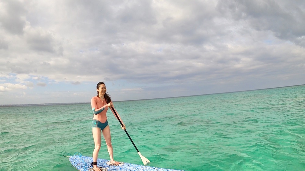 昨日まで台風の影響で中々サップが出来ずようやく今日できたのですがそれでもサップには爆風で漕がないでも進んで戻ろうとしても中々進みません←安心して下さい流されてもインストラクターは安全に楽しんでもらえるためにトレーニングしているのでお客様が進まない場合でも引っ張って進むパワーあります(^^)