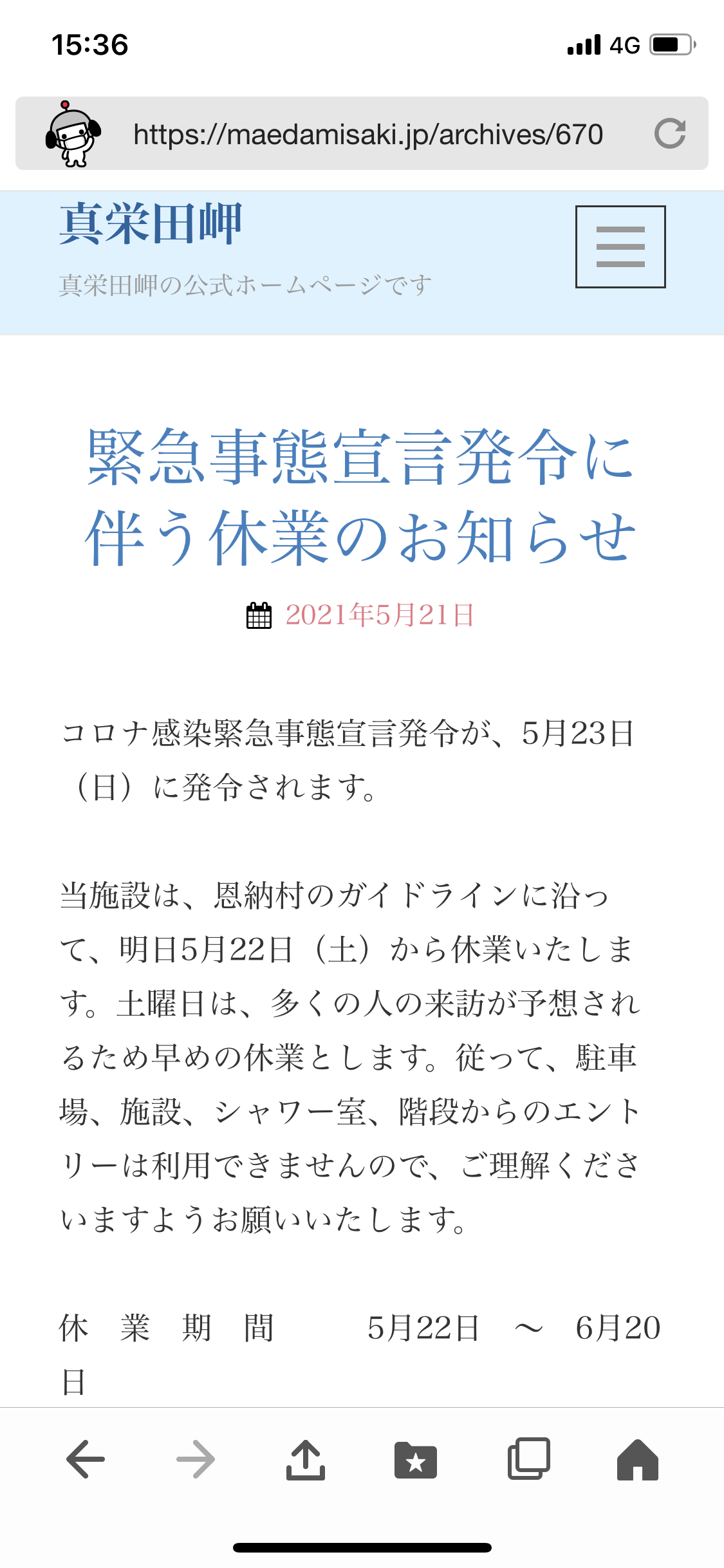 真栄田岬ご利用の方はHPから確認お願い致します。