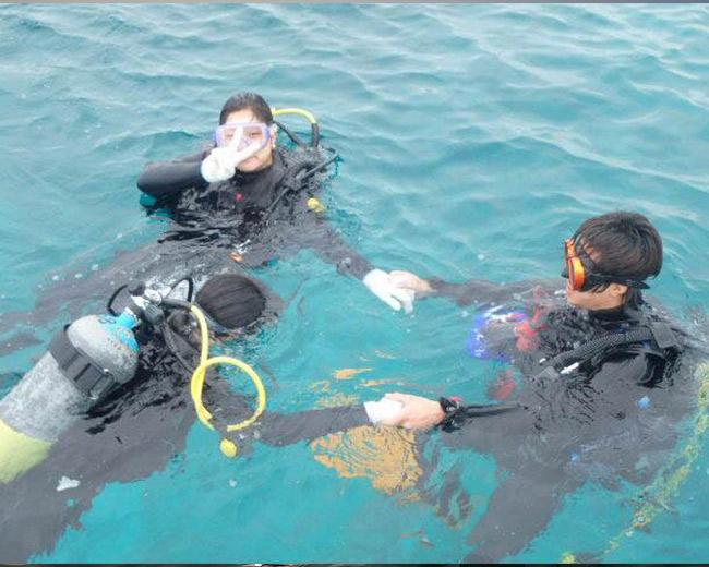 海が怖い方やダイビングが初めての方泳げない方など!インストラクターがしっかりなれるまで水面で練習します♪